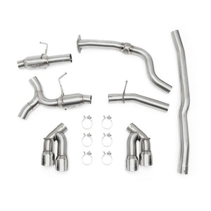 Get aggressive with Mishimoto's Cat-Back Exhaust for the 2016+ Chevy Camaro 2.0T. The LTG engine begs to be opened up with an exhaust mod, and this exhaust does just that. The cat-back exhaust is 3 in diameter from the catalytic converter all the way to the back. The tone is deeper, raspier, and easily noticeable when driving down the road. With a mandrel-bent, 304 stainless steel construction, worries of rust are a thing of the past. While this exhaust is very aggressive, it has little drone, making for a pleasant drive on the highway. The entire system weighs ten pounds lighter than the stock system, so trimming weight is a bonus feature. This exhaust system comes with quad tips (must use the Camaro's rear valence for quad tips), which are available in polished or matte black. Installation takes just about an hour, allowing you to quickly hit the roads in style. And, of course, this system is backed by our Mishimoto Lifetime Warranty to ensure precision and craftsmanship. Order yours today!