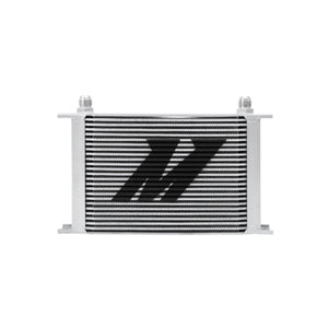 Every street or track vehicle demands a reliable and efficient cooling system.High oil temperatures accelerate oil degradation and can result in increased engine wear and potential failure of internal components.The Mishimoto universal 25-row oil cooler is the perfect upgrade for extending engine life and ensuring the proper lubrication of engine components while maintaining ideal oil temperatures.This oil cooler is nearly 2 inches thick and has an overall oil capacity of .44 qt.The Mishimoto universal 25-row oil cooler is available in silver or black and includes the Mishimoto lifetime warranty.