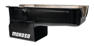 Moroso 80-85 Chevrolet SBC (w/Passenger Side Dipstick) Wet Sump 7qt 9.5in Steel Oil Pan - Black