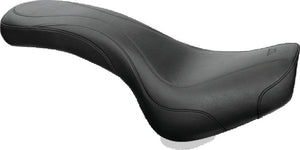 Featuring a unique trapezoid stitch pattern on high-quality expanded vinyl, the solo allows the rider to sit comfortably back into a 15.5" wide bucket that provides superior lumbar support. The matching passenger seat offers a generous 11.5" width that is properly contoured for comfort. All seats and the matching sissy bar pad (76289) have been specifically engineered to provide truly uncompromising comfort for both drivers and passengers. Available with or without a built-in receiver that accepts a fully adjustable and easily removable driver backrest for maximum comfort.