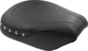 This updated version of Mustang's top-selling DayTripper platform sits riders lower and slightly further back compared to stock and features an all-new "Apex" chevron-style stitch design on the highly durable, synthetic glove-leather cover for a true custom look. The 12" wide driver bucket is cut low to place the rider in a relaxed operating position, while the 7-1/2" rear section maintains a streamlined profile while delivering ample comfort for passengers.