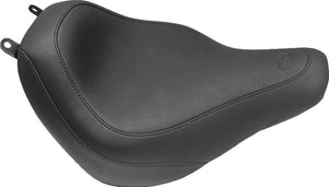 Mustang's standard touring solo offers a 14" wide driver seat with deep bucket styling for back support and to keep riders from sliding back. Both the original and studded styles are trimmed with a braided edge skirt for a classic clean look. Available with or without a fully adjustable and easily removable driver backrest. The 8" wide passenger seat extends forward slightly for increased driver back support on solos without driver backrest, while Recessed Passenger seats are designed to allow adjustability of the built-in driver backrest.