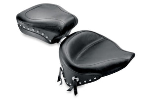 Mustang's Wide Touring Solo provides a full 17.5" width for the driver with deep bucket styling for maximum comfort. Available with or without a fully adjustable and easily removable driver backrest. Pair the solo with a matching passenger seat for comfortable 2-up riding. Recessed Passenger seats are designed for use with the built-in driver backrest. for seats without a built-in driver backrest, the 14" wide passenger seat extends forward for increased driver back support.