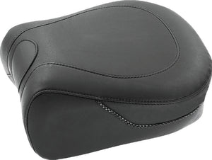 Available with or without a driver backrest, the 15" wide Standard Touring Solo features deep bucket styling for excellent driver back support and to eliminate hard spots, as well as a nose narrower than stock to let the rider easily plant feet on the ground. Mustang's built-in backrest receiver is welded to a rustproof 16-gauge steel baseplate and accepts an easily removable, fully adjustable driver backrest with more features than any other brand on the market. Pair the solo with a matching passenger seat for comfortable 2-up riding. Recessed Passenger seats are designed for use with the built-in driver backrest.