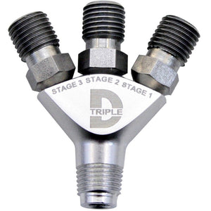 No longer do you need 3 separate nozzles for 3 stages of nitrous! The NX Triple D nozzles allows you to run 3 stages of dry nitrous through a single nozzle. No Reversion Guaranteed!! This nozzles can also be used for water/methanol, so you can have nitrous and water/methanol in the same nozzle., , When used in a NX direct port system, they ensure consistent cylinder to cylinder distribution making them the preferred choice for high horsepower applications. Certificate of Origin Warranty