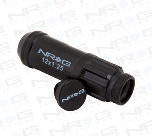 NRG 700 Series M12 X 1.25 Steel Lug Nut w/Dust Cap Cover Set 21 Pc w/Locks & Lock Socket - Black