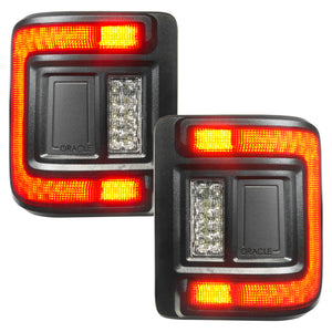 Designed to fit flush with the rear end of the Jeep Wrangler, the new JL Flush Tail Lights from ORACLE Lighting offer new LED features and improved styling. This innovative design is a sleek tail light for Jeep Wrangler JL's that wraps tightly around the truck. Protruding out significantly less than the factory tail lights, this low-profile design avoids damage while trail riding. Because of the nearly flush wrap-around design, the lighting can be visible from any rear angle, making it a unique solution for the Jeep. These Jeep Wrangler JL tail lights provide improved aesthetics and functional LED lighting features including high-powered reverse lights and signature perimeter lighting. In addition to standard features, the plug-and-play design features an enhanced reverse function and caters to the Jeep's optional cross-traffic sensor. The reverse light features 12 high-powered LEDs for optimal rear illumination. The cross-traffic sensor can be swapped directly over from the factory assembly and easily installs into the ORACLE Lighting tail lights for Jeep Wrangler JL. These flush-mount tail lights are compatible with base and LED packages. Gain sleek styling that compliments the original body lines and tons of innovative features. With the superior quality and durability that ORACLE Lighting is known for, these tail lights are the perfect upgrade for your Jeep Wrangler JL!