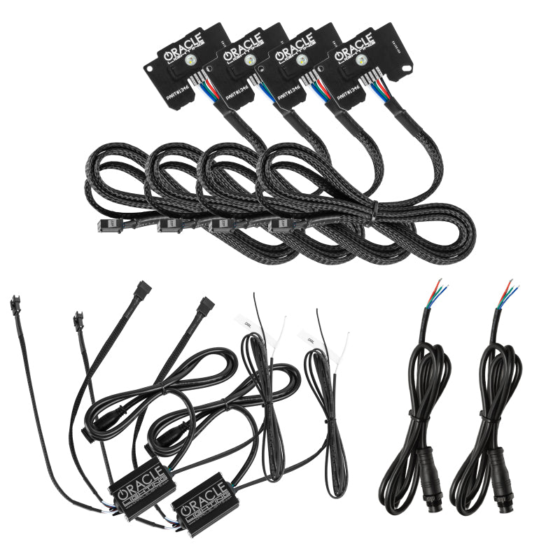 Introducing the Jeep Wrangler JL ColorSHIFT(tm) RGB+W Headlight DRL Upgrade from ORACLE Lighting. This product is designed to fit Jeep Wrangler JL Models with the Factory LED Headlight Option. Featuring our new high-performance RGB+W chips, this new kit allows you to utilize the existing perimeter DRL feature on your Jeep Wrangler JL LED Headlights and convert easily it to Color-Changing Halos while maintaining a true White DRL. These replacement boards feature our traditional RGB ColorSHIFT(tm) technology along with an extra "White LED" which allows for truer white tones, a crisp white DRL color option and the ability to instantly switch over for 100% legal road driving. These DRL boards can make hundreds of different colors, dozens of patterns, control the brightness, and even the speed of the functions as well! Give your Jeep JL the attitude adjustment and stand out from the crowd with the new ORACLE ColorSHIFT(tm) RGB+W DRL Replacement Kit! Kit Includes the following: (4) ColorSHIFT(tm) RGB+W DRL PCBs. (2) Constant Current LED Driver Hubs. (2) Heavy-Duty IP67 Wiring Adapters. This ColorSHIFT(tm) DRL Kit is normally controlled by one of our remote systems to produce any color the user wishes. Depending on the controller option selected, the lights can make hundreds of different colors, dozens of patterns, control the brightness, and even the speed of the functions as well.