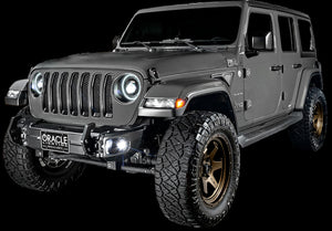 A complete High-Powered LED Fog Light replacement for the SPORT and SPORT S model Jeep Gladiator and Wrangler JL. This direct-fit fog light features plug-and-play wiring for easy installation. These amazing LED units push out approximately 3000 raw lumens which is guaranteed to light up the night on road or off road! This rugged design can operate in the worst possible conditions. Each light utilizes a rugged Poly-carbonate lamp housing to withstand impact and a Solid-State luminaire design for vibration resistance. The epoxy-sealed electronics avoid moisture and corrosion. Perfect for the off-road adventurer who wants to cover new ground on the trail that never ends. Note: WILL ONLY FIT SPORT AND SPORT S MODELS. Latest Product Improvement: Improvements in brightness and reliability by adding a constant current LED driver to the main circuit board inside of the lamp to control the halos. Increased Reliability- By conditioning the power going into the LEDs this prevents degradation which can shorten the overall lifespan of the product. Wider Input Voltage Range- The new SMD Halos can operate on a very wide voltage range from 12V-24V so that voltage spike can not damage the LEDs. Brighter/ More Even Light- by moving the heat load of the resistors off the PCB we are able to increase the number of LEDs on the circuit board without thermal issues. LED chips upgraded from a Cree LED to a Phillips Luxeon ZES chip. They deliver a very high efficacy 130LM/W ratio while having lower thermal output.