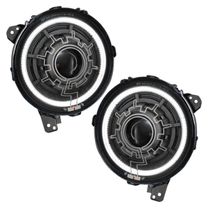 The best-selling Oculus Bi-LED Headlamp system by ORACLE Lighting is now available with a heated lens function for the coldest of environments. Driving in frigid conditions can be unsafe when snow and ice adhere to the lens of the headlight, blocking vital light output. Equip your Jeep Wrangler JL or Gladiator JT with the most advanced LED heated headlight to provide precision lighting and prevent any snow or ice accumulation. This de-icing feature on our heated Jeep headlight eliminates the worry of poor lighting performance and allows for the best functioning illumination when it matters most. Featuring advanced LED projection with 5,200 Lumens of high-quality illumination, the heated Jeep headlight offers enhanced driver visibility in all weather conditions. The LED light source has lower power demands compared to the factory lamps while providing more light output. Specifications: Headlight Beam Wattage: 36W Each Total Headlight Beam Lumens: 5,200LMHeadlight Beam Color Temp: 5500KCertification: DOT SAE 5839-504 HL VOR 19Warranty: 2 Years