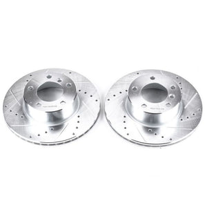 Power Stop drilled and slotted rotors provide a bolt-on upgrade for improved brake cooling and performance. Precision cross-drilled for maximum cooling and maximum performance during extreme conditions; rounded slots sweep away gasses, dust, and moisture to keep a clean friction contact patch on the rotor surface. Silver zinc dichromate plating resists rust and corrosion. With a direct OE fit, there are no special modifications needed.