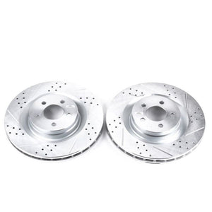 Power Stop drilled and slotted rotors provide a bolt-on upgrade for improved brake cooling and performance. Precision cross-drilled for maximum cooling and maximum performance during extreme conditions; rounded slots sweep away gasses, dust, and moisture to keep a clean friction contact patch on the rotor surface. Silver zinc dichromate plating resists rust and corrosion. With a direct OE fit, there are no special modifications needed.