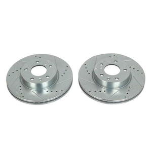 Power Stop drilled and slotted rotors provide a bolt-on upgrade for improved brake cooling and performance. Precision cross-drilled for maximum cooling and maximum performance during extreme conditions; rounded slots sweep away gasses, dust, and moisture to keep a clean friction contact patch on the rotor surface. Silver zinc dichromate plating resists rust and corrosion. With a direct OE fit, there are no special modifications needed.