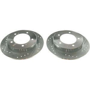 Power Stop drilled and slotted rotors provide a bolt-on upgrade for improved brake cooling and performance. Precision cross-drilled for maximum cooling and maximum performance during extreme conditions; rounded slots sweep away gasses, dust, and moisture to keep a clean friction contact patch on the rotor surface. Silver zinc dichromate plating resists rust and corrosion. With a direct OE fit, there are no special modifications needed.