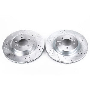 Power Stop drilled and slotted rotors provide a bolt-on upgrade for improved brake cooling and performance. Precision cross-drilled for maximum cooling and maximum performance during extreme conditions; rounded slots sweep away gasses, dust, and moisture to keep a clean friction contact patch on the rotor surface. Silver zinc dichromate plating resists rust and corrosion. With a direct OE fit, there are no special modifications needed.