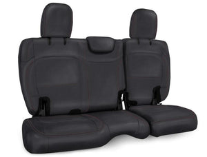 PRP's Seat Covers for the Jeep Wrangler JL bring a whole new look to your interior. These covers have been expertly crafted to fit perfectly over your factory JL seats providing an OEM fit and finish. Install yourself or through a certified PRP installer. Made from durable marine-grade vinyl, they can handle the abuse from both on and off-road environments. The covers install over your stock upholstery, and are side impact airbag compatible. This cover fits over any 2 Door JL Rear bench (all editions).