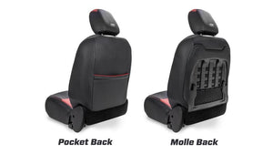 PRP's Seat Covers for the Jeep Wrangler JL and Jeep Gladiator JT bring a whole new look to your interior. These covers have been expertly crafted to fit perfectly over your factory JL or JT seats providing an OEM fit and finish. Install yourself or through a certified PRP installer. Made from durable marine-grade vinyl, they can handle the abuse from both on and off-road environments. The covers install over your stock upholstery, and are side impact airbag compatible. Two different models are available depending on your vehicle: for those have the Rubicon Edition that feature the Plastic Molle seat back, and the Pocket seat back for all other Editions.