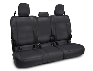 PRP's Rear Bench Covers for the Jeep Gladiator JT brings a whole new look to your interior. These covers have been expertly crafted to fit perfectly over your factory JT bench providing an OEM fit and finish. Install yourself or through a certified PRP installer. Made from durable marine-grade vinyl, they can handle the abuse from both on and off-road environments. The covers install over your stock upholstery. Two different models are available depending on your vehicle's original interior. Vehicles with original leather interiors feature a fold down arm rest in the center of the bench. Vehicles with original cloth interiors do not have an arm rest.