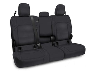 PRP's Rear Bench Covers for the Jeep Gladiator JT brings a whole new look to your interior. These covers have been expertly crafted to fit perfectly over your factory JT bench providing an OEM fit and finish. Install yourself or through a certified PRP installer. Made from durable marine-grade vinyl, they can handle the abuse from both on and off-road environments. The covers install over your stock upholstery. Two different models are available depending on your vehicle's original interior. Vehicles with original leather interiors feature a fold down arm rest in the center of the bench. Vehicles with original cloth interiors do not have an arm rest.