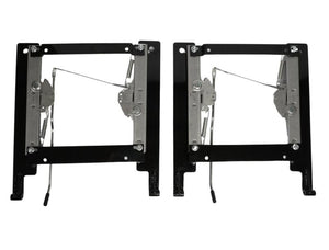 PRP Seat Mount & Slider Kit for Can-Am Maverick X3 and Maverick R (Pair) - PRP's Seat Mount and Slider Kit for the Can-Am Maverick X3 and Maverick R allow you to install your favorite PRP Seats into your UTV. Rather than just a simple adapter mount this is an entire new rail system with more height adjustments, and includes our dual locking seat sliders. A common complaint on the X3 is that the seat sliders start to get stuck after dirt and dust gets into the wheels. So we've added in our own slider kit that has been tried, tested, and proven over the last 20 years in all sorts of off-road environments. Our dual locking sliders provide more security and stability. Both the right and left sides of the sliders have locking mechanisms to keep them in place during hard impacts. These seat mounts allow for an enhanced range of adjustability, allowing the seats to get as low as they can possibly go. You have the ability to set the height and depth of the mounts to get the perfect position for each rider. Creating better comfort, and confidence behind the wheel. The flat base mounts are lower than the stock rails, and have an offset mounting point in the front. So you can flip the mounts down if you want to be lowered an inch, or flip them up if you want to raise the seat height an inch. The mounts use the existing mounting points in the cab, which allow you to raise or lower the seat in the front and back to adjust the seating angle. At the lowest settings with the mounts flipped down, you can sit about 3" lower. This mount is perfect for those with lowered cages. For Maverick R owners this the only mount that we recommend using. The passenger side of the Maverick R has a glove compartment that sticks out farther, making it harder for taller passengers to fit comfortably. This seat mount and slider kit allows you to adjust seat farther back, and adjust the recline angle to get more legroom on the passenger side. Compatibility: These mounts work with any PRP UTV