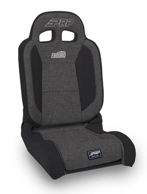 Add comfort and containment to your Jeep, Truck, or Buggy with the EnduroDaily Reclining Suspension Seat from the Enduro Elite Series, the newest line of Reclining Suspension Seats from PRP. Featuring modern styling and a dual slot headrest for harnesses, the EnduroDaily is designed to replace your stock seats in a Jeep Wrangler, Jeep XJ, Ford Ranger, Trucks, or Buggy for increased enjoyment, comfort, and containment off-road. The EnduroDaily Reclining Suspension Seat features Low Bolsters on the Back and Bottom offering a little more containment than most stock seats, but are still quick and easy to get in and out of. This seat is great if you use your vehicle as a daily driver most of the time, with occasional trips off-road. A removable, dual-layered seat cushion means the EnduroDaily offers better leg support and extended comfort. The vinyl-coated nylon suspension liner and dual-density foam decrease the impact on the body and reduce body fatigue after a long day on the road or while exploring off-road. The EnduroDaily reclines completely and inclines enough to allow access to the rear seats. The bottom tabs easily bolt to PRP’s series of mounts built for Jeeps, Broncos, Ford Rangers, and more. The seat features a Tweed Center with Vinyl Back and Band. Available in several different color combinations.