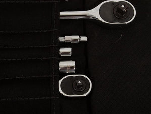 PRP's Polaris RZR Roll-Up Tool Kit provides everything you need to fix your RZR out on the trail. This 39-piece kit includes a selection of high-quality ratchets, sockets, wrenches, extension bars, pliers, and a ball peen hammer. We have hand-picked the tools most commonly needed when working on a Polaris RZR so you'll have the essentials that you need! Made from extremely durable twill material, the Polaris RZR Roll-Up Tool Kit makes it easy to keep everything neat and organized. The bag is made from extremely durable twill material, features heavy duty buckles, and has an easy to carry grab handle. A zippered pocket holds all the sockets you'll need and any other tools you want to bring with you. The tool bag can be mounted, or stored securely inside the vehicle. The roll-up style bag makes it quick and easy to grab out of the vehicle when you need it, and the tools inside don't make noise when bouncing around the trails. This kit also comes with PRP's innovative RZR Belt Changing Tool. This tool makes it quick and easy to change the belt on your Polaris RZR 570, 800, XP 900 & XP 1000. Rather than use a wrench to hold open the secondary clutch, our simple tool ‘locks’ the clutch open. Simply insert the tool, tighten down the bolt, and leave it in place while you change the belt. Change a belt in seconds! For Turbo, Turbo S, RS1, and PRO XP, & PRO R's we've included a hardened 1/4" bolt in the RZR Roll-Up Tool Kit. Rather than using the L-shaped clutch wrench that's included in the stock Polaris tool kit you can simply insert this bolt, and use a ratchet (or impact) to tighten it down in seconds. The bolt holds the secondary clutch open, so you can quickly and easily change the belt. Don't get caught out on the trail unprepared. PRP's Roll-Up Tool Kit has everything you need to get your RZR going! Plus, each tool also includes a Limited Lifetime Warranty! Testimonial "This tool burrito is the product I end up using the most, and has pretty much everything y