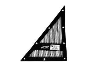 These Triangle Window Nets are perfect to fit in the space between the A-pillar of most race vehicles, with a universal fit. Measures 12"W x 15"H x 19" Diagonal. Includes grommets all around the net, so it can be attached to the cage/bars with zip-ties or hose clamps. SFI 27.1 Certified. Sold individually
