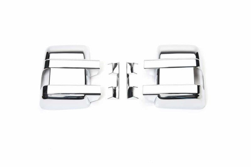 Give your mirrors an extra shine with Putco Chrome Mirror Covers. Our mirror covers are constructed out of the OEM automotive grade ABS chrome. ABS chrome covers have been tested to withstand all the elements and everything the road can throw at it.  Each cover is custom made to fit your type of mirror for your year, make, and model. Putco's chrome mirror covers also match any other OEM chrome you have on your vehicle. Installation is made simple and easy with our pre-applied automotive-grade 3M tape. No drilling necessary, just peel and stick.