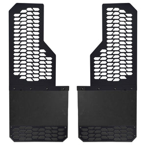 Putco’s New Hex Shield™ mud flaps are custom-fit and deliver the best protection against rocks, mud, snow buildup, and all the other debris your truck likes to find on the road. These new Mud Skins™ feature our popular Hex Shield™ pattern and install in just a few minutes. These are manufactured with carbon black high-density polyethylene (HDPE) right here in the USA! It's time to protect your truck from debris with the coolest no-drill head-turning offset mud flaps on the market. The offset design is the perfect style for today's pickup trucks with oversized tires... or not! The flap is made with the Gortillatuff Spashguards™ – this stuff is thick and extremely durable for anything that mother nature decides to throw at it.  Get a front set, the rear set, or the full set today!