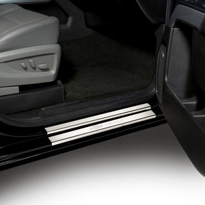 Protect your door sill from scratches in style with the Putco Chevy Bow Tie logo stainless steel Door Sill plates. These quality trim pieces are constructed out of polished T-304 stainless steel, giving them a mirror-like finish. Putco has gone above and beyond and added the Chevrolet letters and Bowtie logo to the front door sill plates. Each set of door sills is custom-made for your truck's year, make, and model for a perfect fit.Every Putco stainless steel Door Sill plate is backed by a Limited Lifetime Warranty against rust. This is the perfect way to give your truck a little more protection from the rough steps it gets and give it a more premium look at the same time. These GM-licensed products are designed and manufactured in the USA by Putco Inc. Des Moines IA. Warranty Installation Instructions