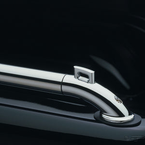 Get the best of both worlds with Locker truck bed rails with pop up tie downs. The corner die-cast sanction pushed closed when not in use and pops up when you need to tie down your cargo. Manufactured with premium grade 304 stainless steel tubing and die cast ends that feature a chrome finish have next level looks.  Each tie down end can handle 500 lbs and the spring loaded design is easy to use.Like all locker truck bed rails, the Pop up style works well with most inside the bed rail mount tonneau covers and most headache racks. They are also great for protected your bed from scratches, dings and dents when loading items into your pickup's cargo box. When you're not tying down cargo or hauling your 4 wheeler or motorcycle, you can close the tie down ends for a classic round tube bed rail look. Manufactured by Putco, Des Moines, IA.