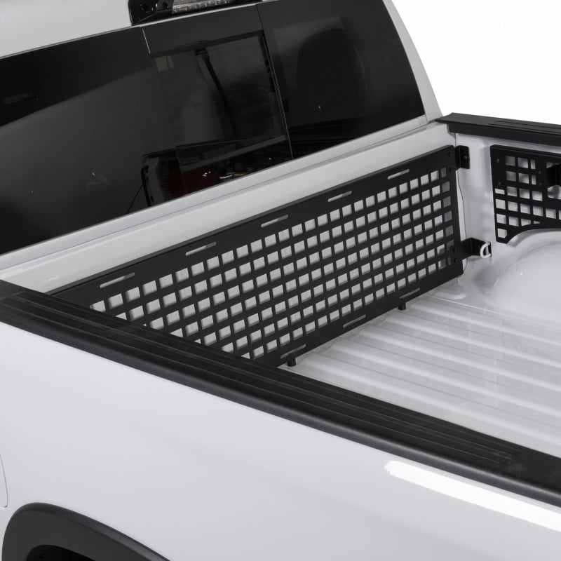 Secure your cargo in the back of your truck bed with this next level one of a kind truck bed storage organizing system.  New from Putco are the Molle Panel inside truck bed panels system. This amazing cargo storage system is perfect for latching down nearly anything you want to secure in place like Molle bag, trail gear, construction gear, jacks, or anything your heart desires. Available for the bulkhead, side bed and tailgate area. Choose from getting the entire set or just getting one side. Great for Overlanding pickup trucks or work trucks to hang and organize gear, tools and more. These truck bedside organizers called molle panels are great for storing your gear and organizing your truck bed whether you use your pickup for work or play. Plus the are a must-have for the overland truck for your next outdoor adventure.Constructed out of durable CNC cut 10 gauge aluminum that is finished with a mini-textured black powder-coat. This American made panel system works with most industry-leading mounting accessories like Quickfist, Kolpin, Molle, and much more. Also, this come is compatible with most soft roll-up and hard fold cover on the market.Installing a Molle panel is simple with no drilling or cutting of any kind and its custom design for your year, make and model allows you to use your OEM tie-down area and other standard OEM features of your truck. Each panel is backed by a three-year warranty. So if you are tired of your cargo rolling around and want it secured in place the Putco Molle Panels are for you.