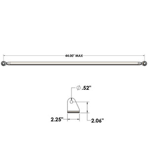Product Overview: QA1's Diagonal Link Kit helps streamline the fabrication process, of building a drag race style 4-Link. This diagonal link kit pairs up great with the QA1 HD Pro Rear 4-Link systems, but can be easily adaptable into most drag race setups. High quality, MIG-weldable components ensure a safe and properly engineered design. Performance and Adaptable Design: This heavy-duty design can handle the demands of high-performance racing. The 1 inch diameter by 40 inch length of tubing can be cut to length to work in most setups with 40 inch or narrower frame-rails. Pre-bent and drilled mounting brackets make installation into inch trailing arm bolts a breeze. Grade 8 hardware and QA1 chromoly, high misalignment rod ends are the standard in strength and offer generous mounting flexibility. Look to the provided dimensional diagrams and renderings to help with your custom install. Kit Contents: 40 Diagonal link kit with mounting brackets and tube adapters Grade 8 hardware kit Made in the USA Fitment Notes Works on 40 in. and narrower frame rails Installation Instructions