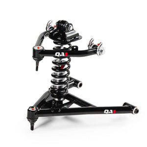 Product Overview Upgrade the front suspension of your NBS truck with QA1’s complete coil-over and control arm kit. Designed for 2WD 1999–2006 Silverado and Sierra 1500s, this system includes tubular upper and lower control arms and QA1’s single adjustable coil-overs DIAL IN THE PERFECT STANCE QA1’s front coil-overs give you 1" to 3" of ride height adjustability right out of the box. Want to go lower? Pair them with QA1’s 2" drop spindles (Part Number: 9056-120) for a total drop range of 3" to 5" up front. Whether you're aiming for a subtle level or a slammed street look, this setup lets you get it just right. IMPROVED GEOMETRY WITH BOLT-ON CONTROL ARMS The included QA1 upper and lower tubular control arms are built to improve suspension geometry and increase strength over stock. They offer more clearance for coil-overs, reduce deflection under load, and help maintain proper alignment. RIDE QUALITY YOU CAN TUNE This kit features QA1’s single adjustable coil-overs, allowing you to set your preferred ride height and fine-tune damping with 18 clicks of combined compression and rebound adjustment. It’s easy to adjust on the vehicle and delivers a noticeable improvement in both comfort and control. STRAIGHTFORWARD, BOLT-ON INSTALL This system bolts directly into place using standard tools—no welding required. QA1 includes everything you need for a smooth install, with pre-installed ball joints and bushings in both control arms to save you time. MADE IN THE USA QA1 NBS suspension is proudly made in Lakeville, Minnesota and built to last with a durable powder coat finish. Fitment Notes: Fits 1999–2006 Chevrolet Silverado / GMC Sierra 1500 2WD with coil front suspension: Works exclusively with QA1 sway bar (Part Number: 52869) - does not fit with factory sway bar: Works with factory or QA1 drop spindles (Part Number: 9056-120): Not compatible with vehicles originally equipped with torsion bar front suspension