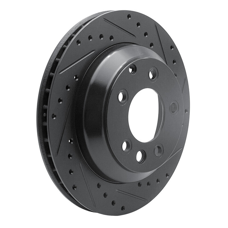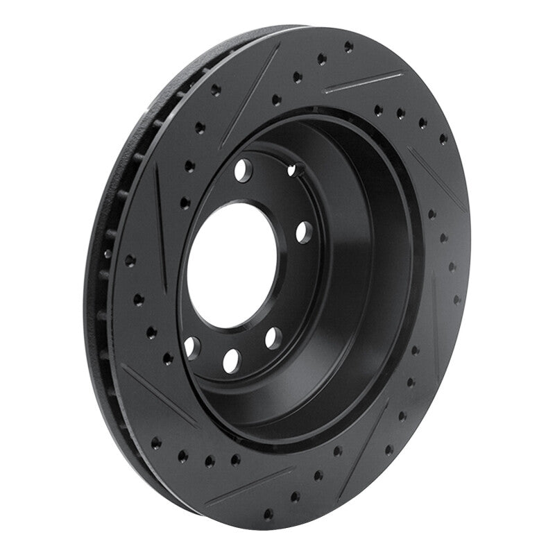 R1 03-18 Audi Q7 Rear Right Drilled & Slotted Black Brake Rotor - 633-74048R