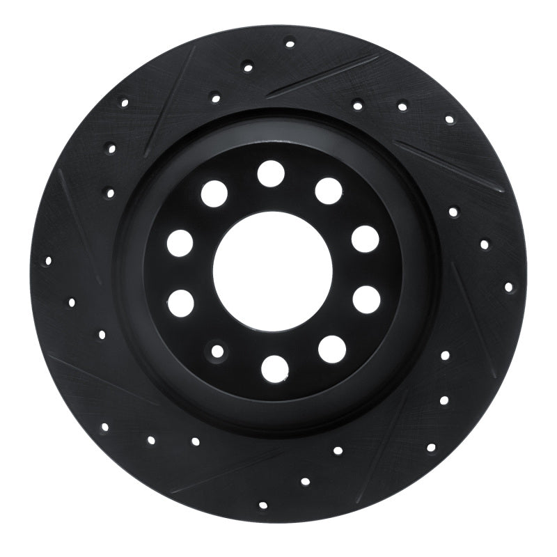 R1 05-11 Audi A6 Quattro Rear Left Drilled & Slotted Black Brake Rotor - 633-73042L