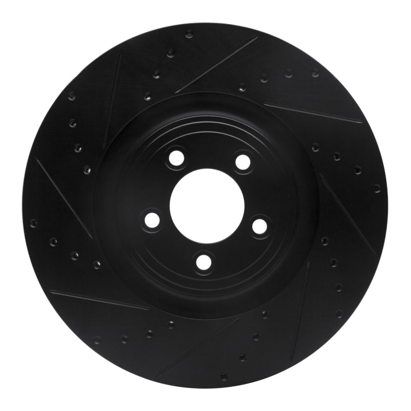 R1 06-21 Jaguar F-Type Front Left Drilled & Slotted Black Brake Rotor - 633-20020L