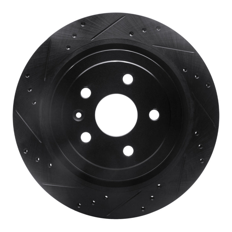 R1 08-14 Cadillac CTS Rear Left Drilled & Slotted Black Brake Rotor - 633-46026L