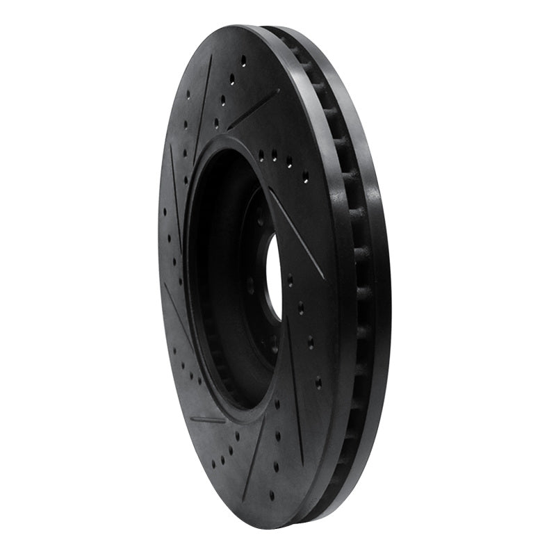 R1 10-24 Jaguar XKR Front Right Drilled & Slotted Black Brake Rotor - 633-20026R