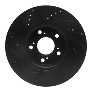 R1 14-20 Acura RLX Front Right Drilled & Slotted Black Brake Rotor - 633-58025R