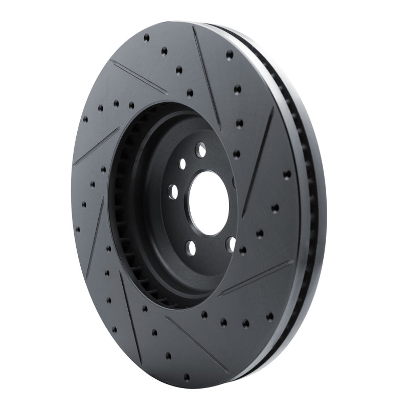 R1 20-25 Jaguar E-Pace Front Left Drilled & Slotted Black Brake Rotor - 633-11033L