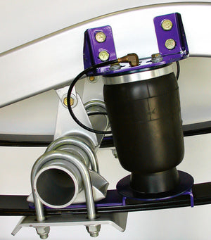 Air Over Leaf with 3000 lb. capacity with weld-on lower mount and side frame upper mount, universal fit. Includes 5" diameter 9000 air springs, brackets and hardware
