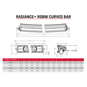 The stylish versatility of the RIGID Radiance light bars just got better. Now introducing Radiance+ Curved RBGW light bars. The latest addition to the Radiance light family provides you with the ability to toggle between eight available backlight options with the flip of a switch: red, green, blue, light blue, purple, amber, white, or demo mode. The RIGID Radiance+ Curved RGBW bars are built with the same high-grade aluminum alloy housing as RIGID's legendary RDS-Series but include a stylish color-changing backlight. Inside, the Radiance+ Curved RGBW bars are feature-packed, with a black exposed circuit board, optimized forward projecting Spot Drive optics that combine the attributes of a spot and a drive beam pattern. Available in 20, 30, 40, and 50 Inch sizes, the Radiance+ Curved RGBW lights bars take the customization of your vehicle to the next level. Own The Night in style with Radiance+ RBGW lighting.