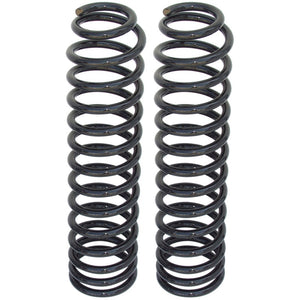 This pair of RockJock front coil springs will provide 3 inches of lift in TJ Wrangler, LJ Unlimited or JK Wrangler Unlimited (4-door) application and 4 inches of lift in a JK Wrangler (2-door) application. These springs directly replace factory springs and are designed to work with RockJock Johnny Joint suspension systems or other manufacturers lift kits and provide improved ride quality and height control. Finish is gloss black powder coat. Extensive research was done by RockJock to develop the perfect spring rate and quality of the coil springs. The results: they provide the best in comfortable ride and excellent performance off-road. If you need help choosing the correct springs for your Jeep - just call the RockJock sales staff!