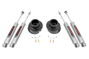 Lift, level, and smooth out your ride with Rough Country's new and improved 2.5-inch RAM 2500/3500 Leveling Kit. Engineered to fit RAM trucks equipped with front radius arm suspension setups, this easy-to-install kit gives a big boost at an unbelievable price! Rough Country's durable coil spring spacers have been expertly redesigned to match the factory geometry of your truck, including the angle of the coil mounts and position of the rubber isolator, which perfectly indexes both springs to eliminate any chance of coil bowing. This kit also includes a pair of front N3 Shock Absorbers for better ride quality both on and off-road. Rough CountryΓÇÖs N3 shocks are nitrogen charged, featuring 10-Stage Velocity Sensitive Valving for a smooth ride no matter what the terrain. This kit also features a lightning fast, 100% bolt-on installation process that couldn't be easier or less invasive to your new vehicle. Includes Rough Country's Lifetime Replacement Warranty.