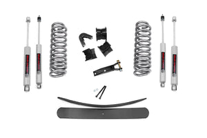 Give your Ford an aggressive look from front to rear with Rough CountryΓÇÖs 2.5" Ford Suspension Lift Kit! This easy-to-install leveling kit raises the front of your vehicle to be equal height with the rear for a leveled, flush look that gives a better ride height and more aggressive appearance. This kit features a set of front, durable coil springs allowing you gain additional ride height without sacrificing ride quality or performance. A set of 4 degree c-bushings and track bar drop bracket are provided to keep everything at optimum angles for a factory-like ride, even after lifting. A set of Rough Country's premium N3 shocks are also included in this kit. These fine tuned 10-stage variable high-pressure Nitrogen charged shocks offer a fantastic blend of off-road action and smooth highway ride quality. With a durable 18mm spring-loaded piston rod and faster-cooling 54mm shock body. Get the wheels you want! Rough Country's 2.5" Ford Suspension Lift Kit comes with everything you need to fit up to a 33" tire with proper wheel backspacing. Best of all, Rough Country's 2.5" Ford Suspension Lift Kit is backed by our Lifetime Replacement Warranty.