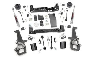 Give your RAM 1500 the perfect blend of performance, protection, and style with Rough Country's 4-inch Suspension Lift. Designed to offer an affordable way to maximize off-road performance and run up to 35-inch tires, these kits offer high quality, heavy-duty equipment for new model RAM 1500ΓÇÖs. Utilizing heavy-duty, laser cut, steel equipment engineered by Rough Country, these 4-inch Suspension Lifts are complete kits that include everything needed for outstanding off-road performance. High-clearance front and rear cross-members provide enough room for off-road climbs and runs. A heavy-duty skid plate shields the vehicleΓÇÖs differential, protecting you from hazardous terrain. A durable set of driver and passenger side lifted cast knuckles are also included, helping to promote proper geometry once the vehicle is lifted. For true trailblazers, this kit also ships with a set of rear N3 Nitrogen-charged shock absorbers - valved specifically for a blend of on and off-road performance. Includes Rough Country's Lifetime Replacement Guarantee!