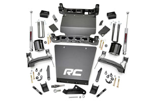 What better way to deck out that brand new 2014-up GM 1500 you worked so hard for than with the aggressive stance and jaw-dropping ride height of Rough Country's brand-new 5-inch Suspension Lift for 2014 Chevy / GMC 1500 Pickups? This massive lift is designed to retain your stock track width! This affords your truck the ability to run up to an impressive 33-inch tire on factory 20-inch wheels, and gives you a nearly limitless choice in aftermarket wheels and tires that other kits just can't fit. This kit ships with EVERYTHING you need to give your new truck the aggressive stance and capabilities it deserves; Stout upper strut spacers, a beefy front and rear skid plate, our Heavy Duty Front and Rear Crossmembers, and a set of differential and sway-bar drop brackets - all designed by our in-house Research and Development team with 100% laser-cut materials for the best possible fit on your vehicle. Also included are a set of our Nitrogen charged N3 Shocks! Offering the best in balanced performance for on and off-road use, these shocks feature a 10-stage velocity sensitive valving custom tuned for this specific application. That means these shocks are specifically valved for use with this vehicle and lift combo, giving you unparalleled performance for any driving situation.