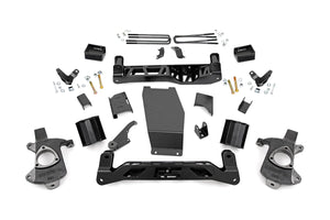Get the look you really want with Rough Country's 5-inch Suspension Kit for GMC Sierra Denali 1500 Pickups equipped with Magnetic Ride Control. This massive kit affords your truck the ability to run 33-inch tires on factory wheels with our beefy lifted knuckles and is designed with 100% laser-cut materials for the best possible fit on your vehicle. Includes a set of front and rear high-clearance crossmembers featuring the "RC" logo and a differential skid-plate. Each kit also comes with a set of durable, fabricated lift blocks that are stronger and offer a longer lifespan than cast blocks. Give your pickup an aggressive, lifted and level stance with incredible ride quality! Our innovative Lifted Knuckle design boosts ride height while keeping all components at the optimum angles for a factory-like ride. Includes Rough Country's Lifetime Replacement Warranty.