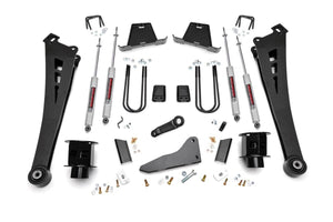 Compliment your RAM 3500's aggressive, good looks with Rough Country's new 5-inch Lift Kit. New model RAM Trucks come with a wealth of impressive features right from the factory. Rough Country's new 5-inch kit was engineered to retain these impressive factory specs while bumping up performance and durability where it's needed most. The result is an aggressive, lifted beast with an mean profile and lush ride-quality that'll make other RAM owners wonder where you got yours from! When changing a vehicle's suspension, the key to preserving ride quality is in keeping the geometry of all suspension components as close to their factory angles as possible. Rough Country's new 5-inch Suspension kit features a set of ultra-durable Radius Arms, precision fit to bolt right into the factory mounts for an easier install and a more factory-like angle. These beefy, upgraded Radius Arms also feature a durable, durable rubber bushings for maximum vibration absorption. In a further effort to preserve the truck's factory ride, this kit retains the factory progressive rate coil spring -- designed by Dodge specifically for the weight and ride quality of these new model trucks. Get the look you really want for your truck with an easy-to-install kit, at an incredible price!